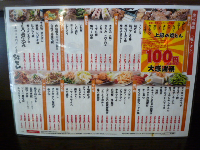 夜のメニュー!安いです。