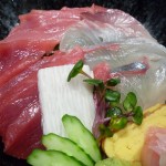 海鮮丼を注文しましたが、マグロの他にもブリ、鯛、カンパチ、シマアジがのっていて全てが完全養殖のようです。