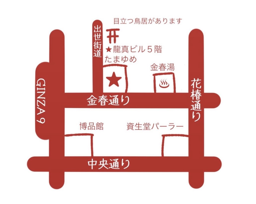 | 補足 | Dr.コパの鳥居を入って左側のビルの5Fです。博品館の裏の通り金春湯の近く♨出世街道入口 |